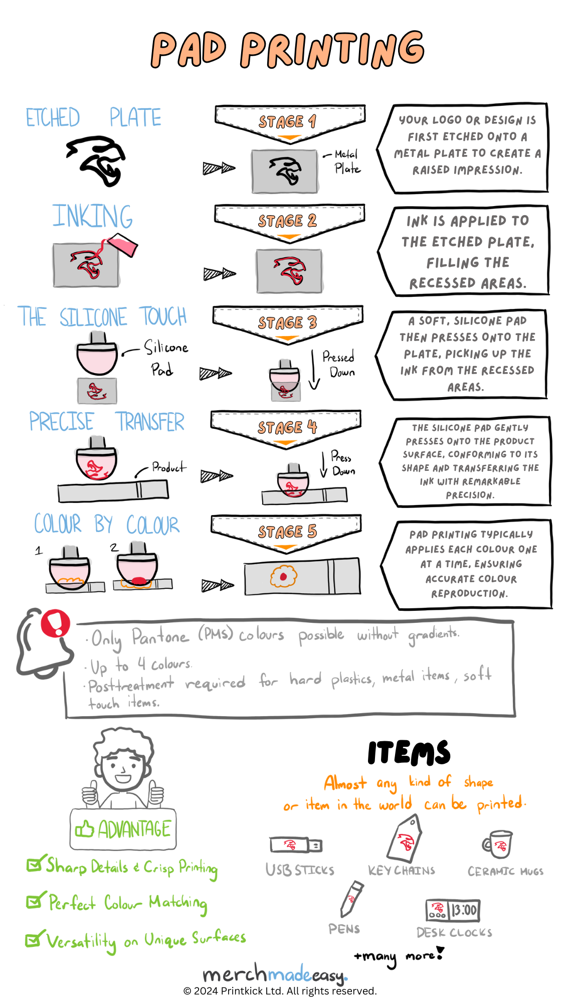 - Colour by Colour: Similar to screen printing, pad printing typically applies each colour one at a time, ensuring accurate colour reproduction.